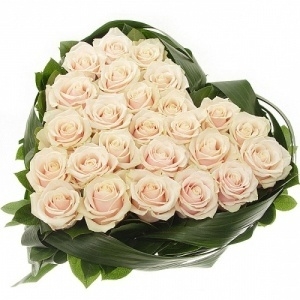 Большой букет из 15 веток белой хризантемы в виде сердца. Букет собирается на проволочном каркасе.